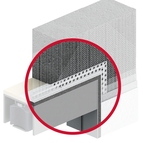 Zur Ausbildung von planebenen Fugenflanken bei Gebäudedehnfugen in Wärmedämm- Verbundsystemen. Dies sind Anschlüsse an fassadenbündige oder vorstehende Fenster-/Bauelemente, wie z.B. Raffstorekästen oder bei horizontalen Bauwerksfugen bei Aufstockungen, etc.