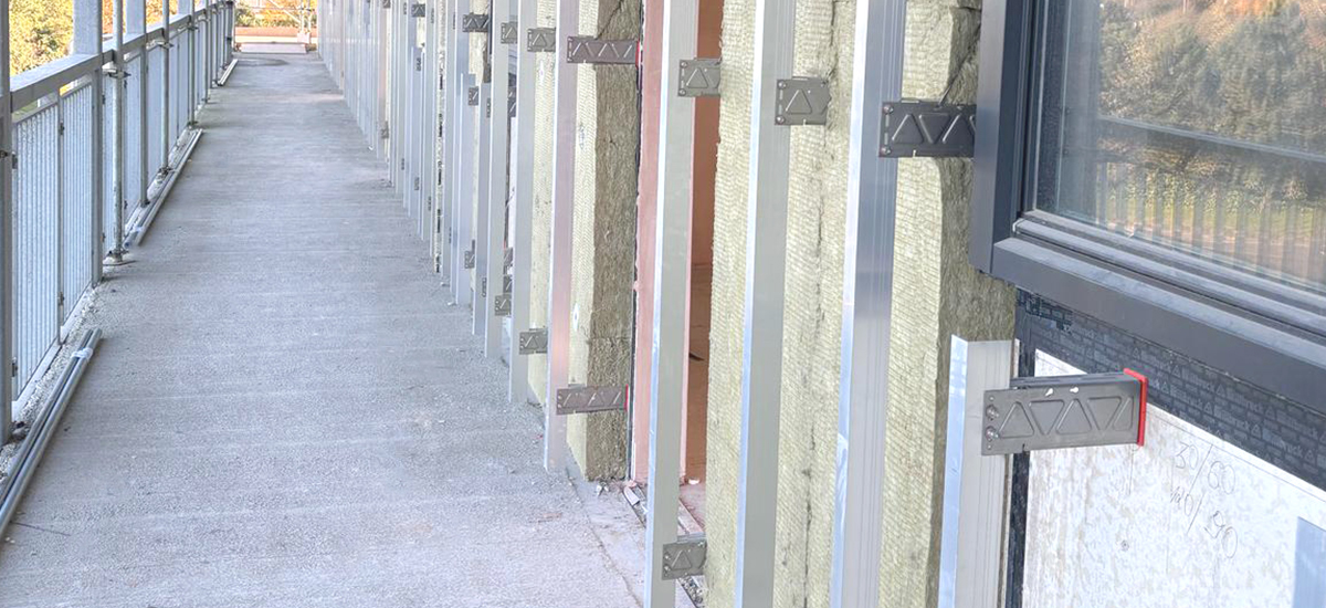 CROSSFIX® Konsole werden ergänzt durch die nicht brennbare Feuerwiderstandsklasse des Systems und die einzigartige Gestaltungsflexibilität, die sowohl horizontale als auch vertikale Montage erlaubt. Somit ist das CROSSFIX® Unterkonstruktionssystem eine ideale Lösung für moderne Bauprojekte mit hohen Effizienz-, Sicherheits- und Qualitätsanforderungen.